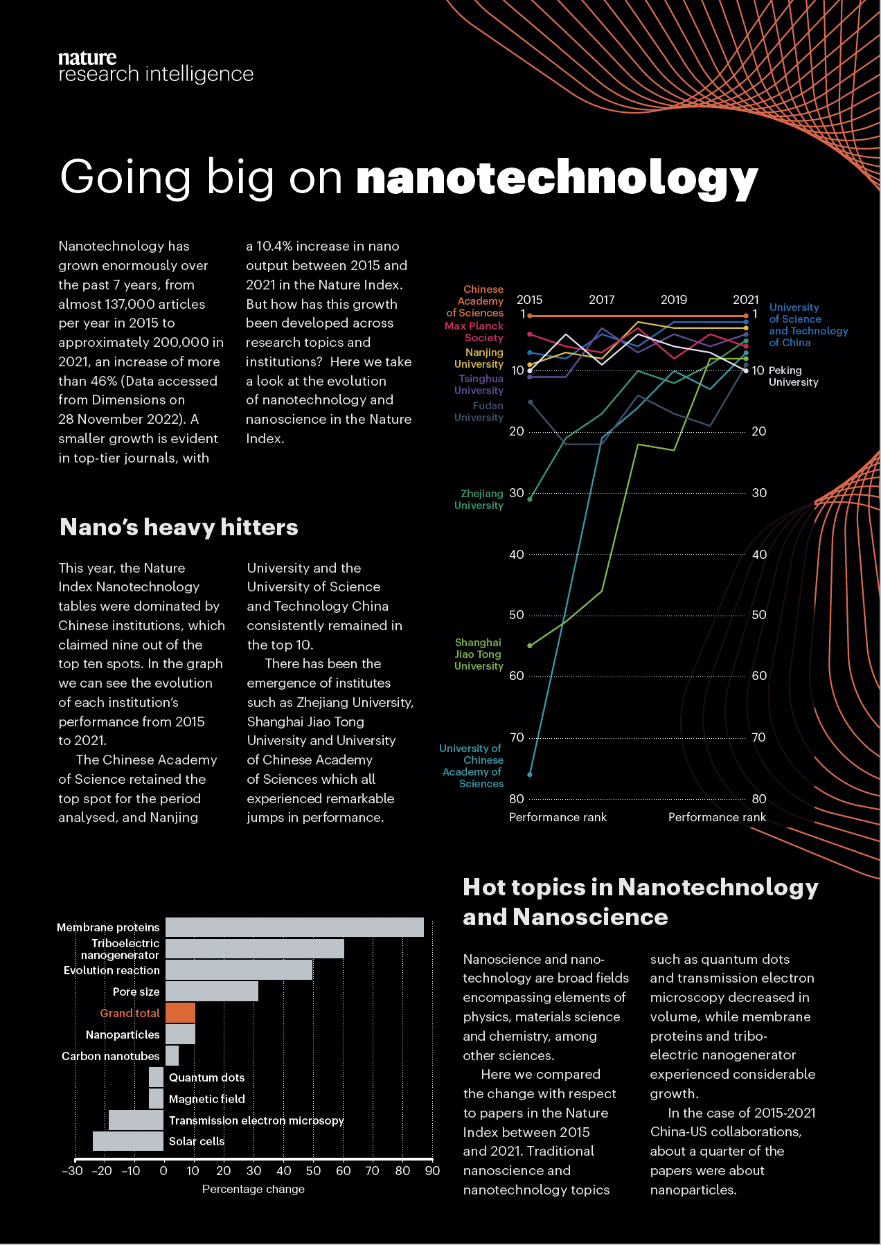A simple two-sided A4 flyer was needed for an online-only marketing campaign aimed at discussing the expanding use of nanotechnology around the world, and its burgeoning presence in academic literature.